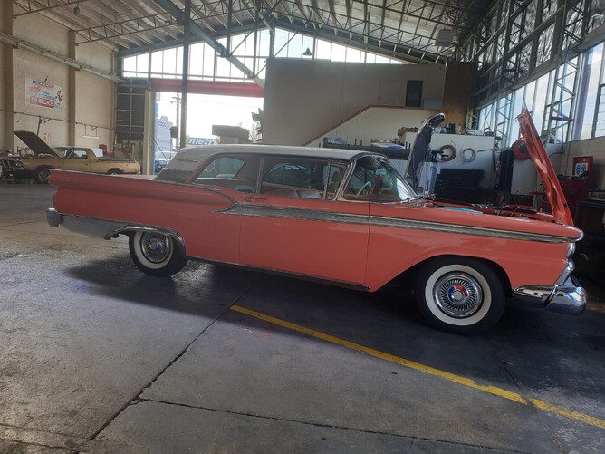 The 1959 Ford 500 Fairlane comes in because the compressor is noisy and the AC is not working. We need to delve into the system to find out what’s wrong.
